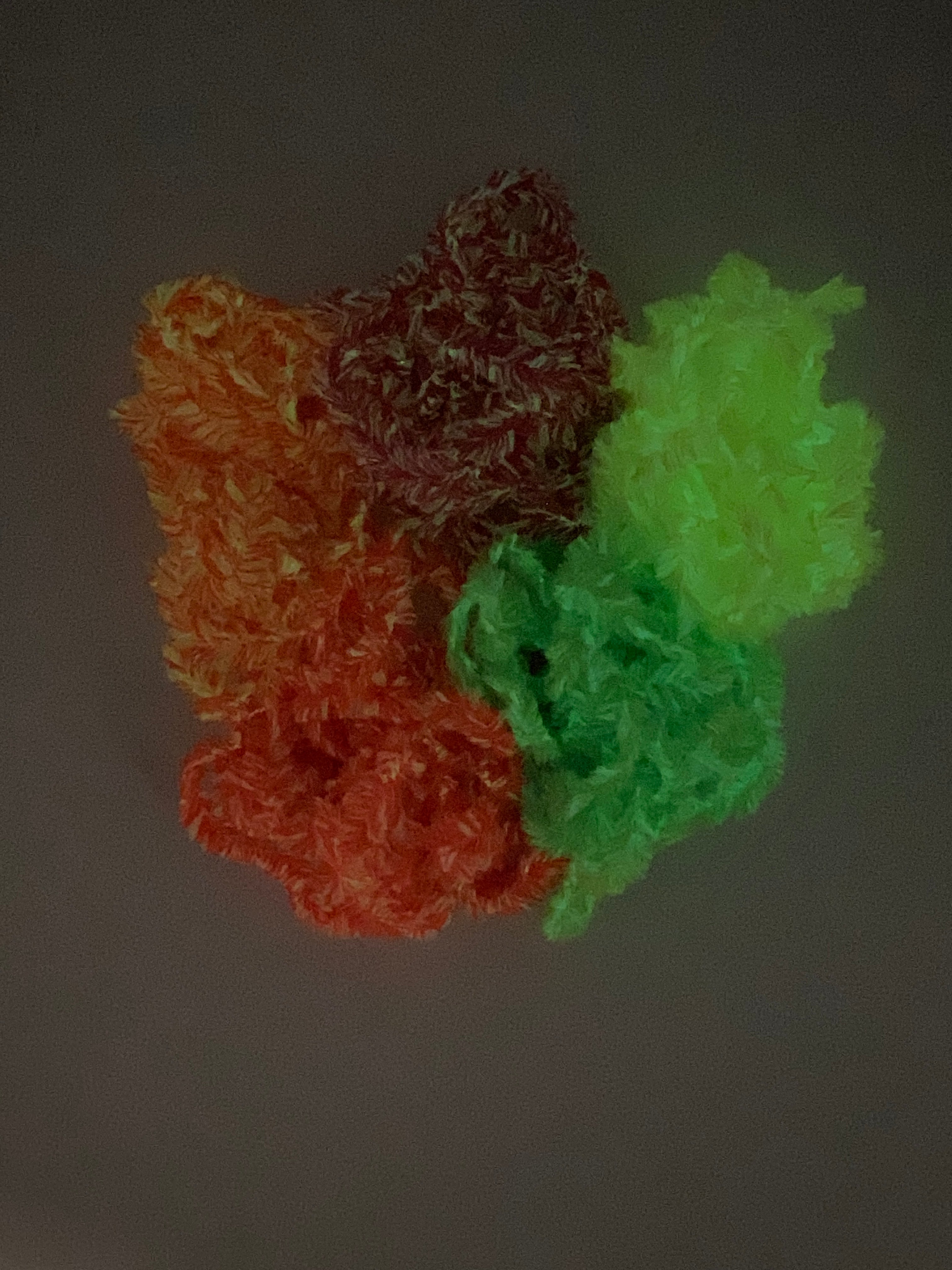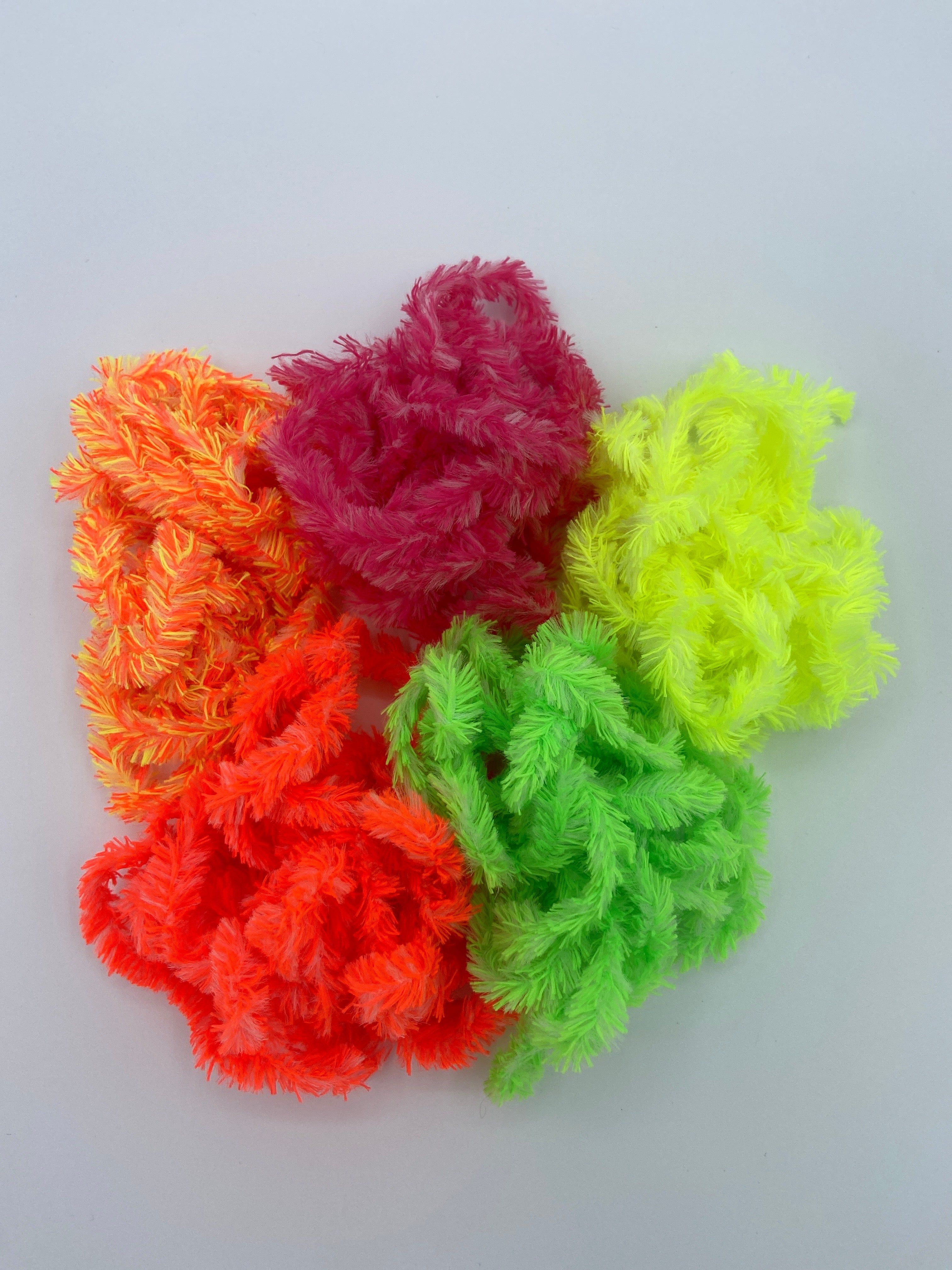 Glow in the Dark egg-it is a subtle blend of dyed fluorescent and glow in the dark fibres. Whilst slightly stiffer than our standard egg-it, it retains the soft, silky feel and its cotton wool type properties. Its fine core allows it to be wrapped around the hook easily. When fished it creates a halo effect on its outer edges. Glow in the dark egg-it finishes at approximately 12mm very similar to standard egg-it. Besides eggs this will be a great addition to standard blobs. (Like all egg-it products it benefits from being bruushed out with a dubbing brush or velcro.) Initially available in 5 colour blends. Appoximately 2 meters per pack.
