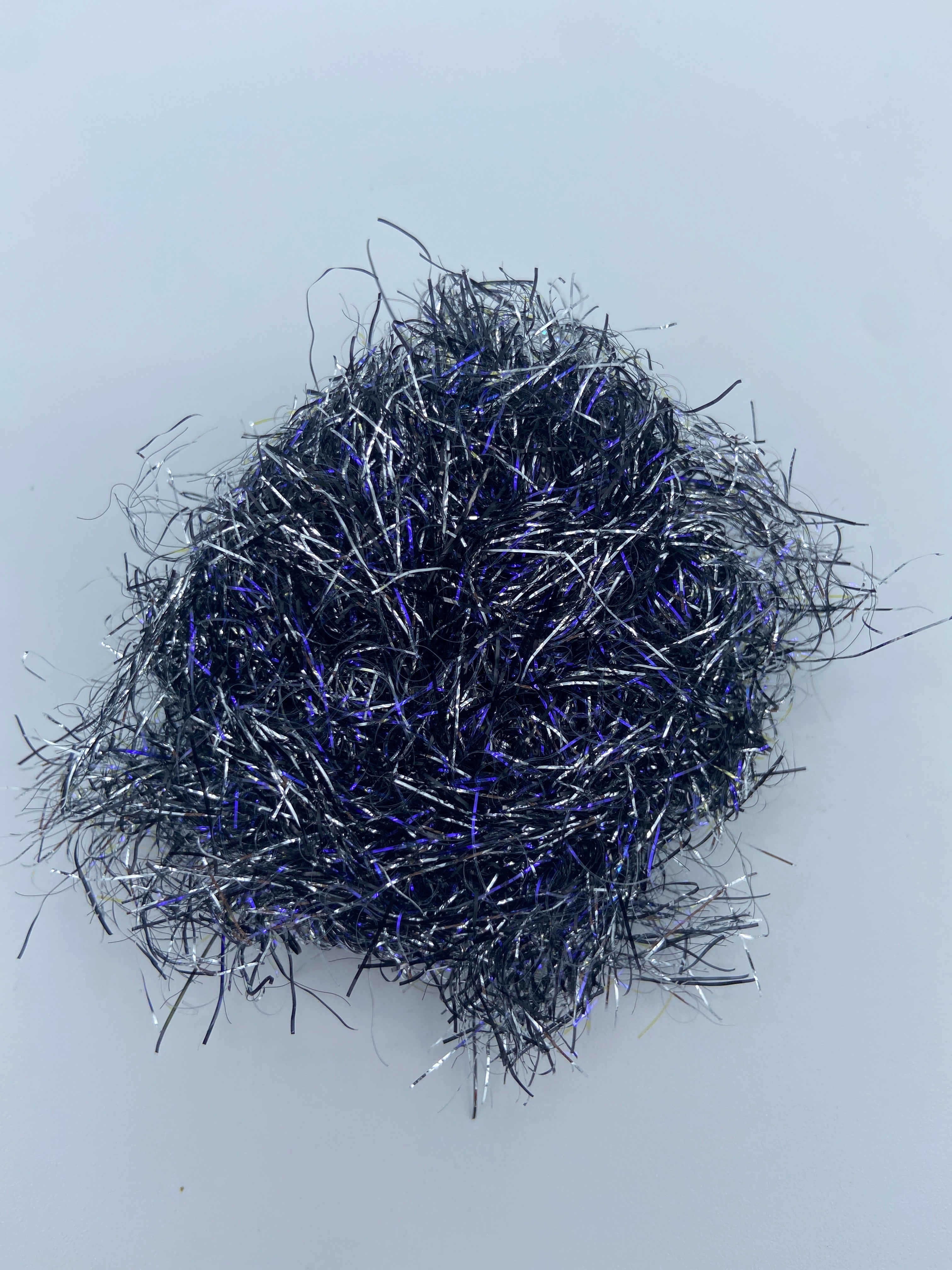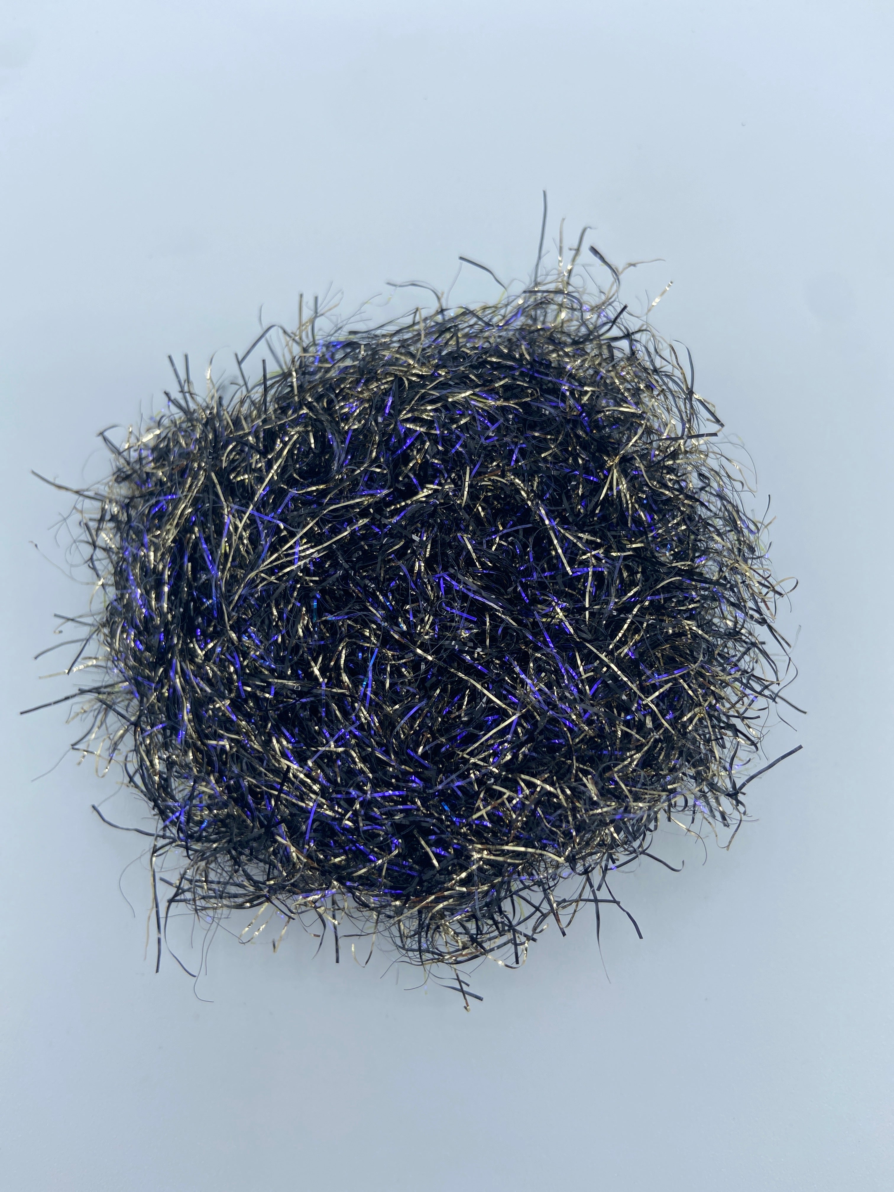 This Polar Synergie straggle is 30mm in length. It is built on a fine core and is available in two versions; the straggler has either gold or silver added as an extra to the UV. It is ideal as an added flash to the larger or longer lures required for sea trout or pike patterns. (Utilized by Billy Scott in his Sea trout 'Terror' patterns. Recently tied by Davie McPhail on his YouTube channel)